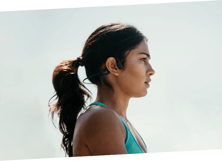 With nothing inside or over your ears, our patented bone conduction technology allows for total situational awareness and bud-free comfort while you listen. Open-ear design lets your ears “breathe” freely.