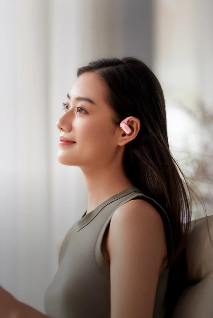 Meet the OpenFit Air’s ergonomic dual-bevel design, straight from the genius minds at Shokz Labs.